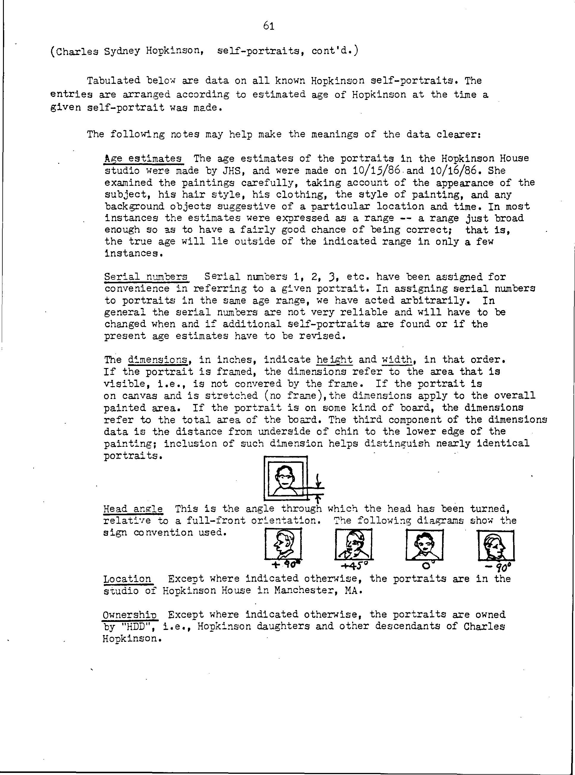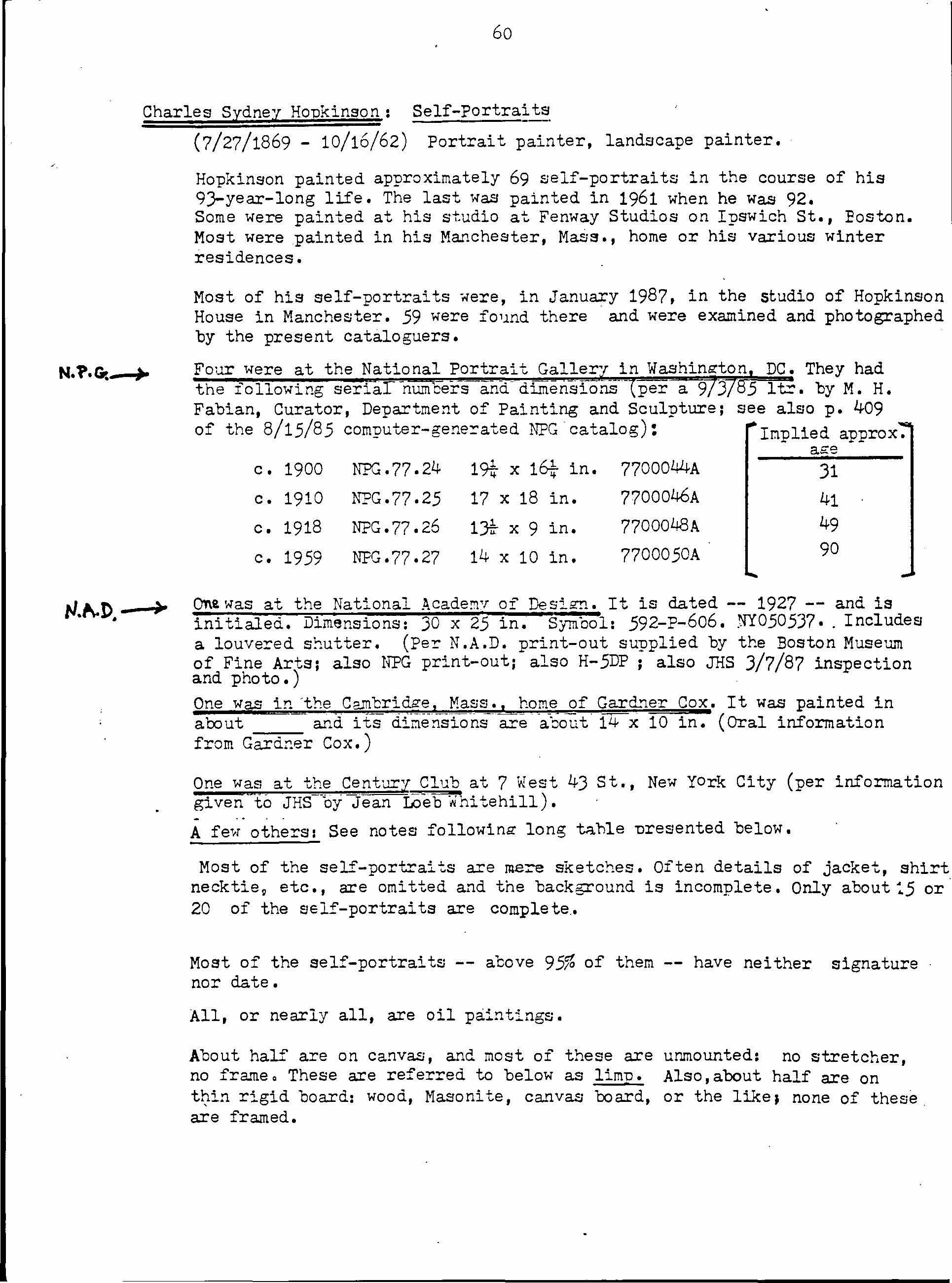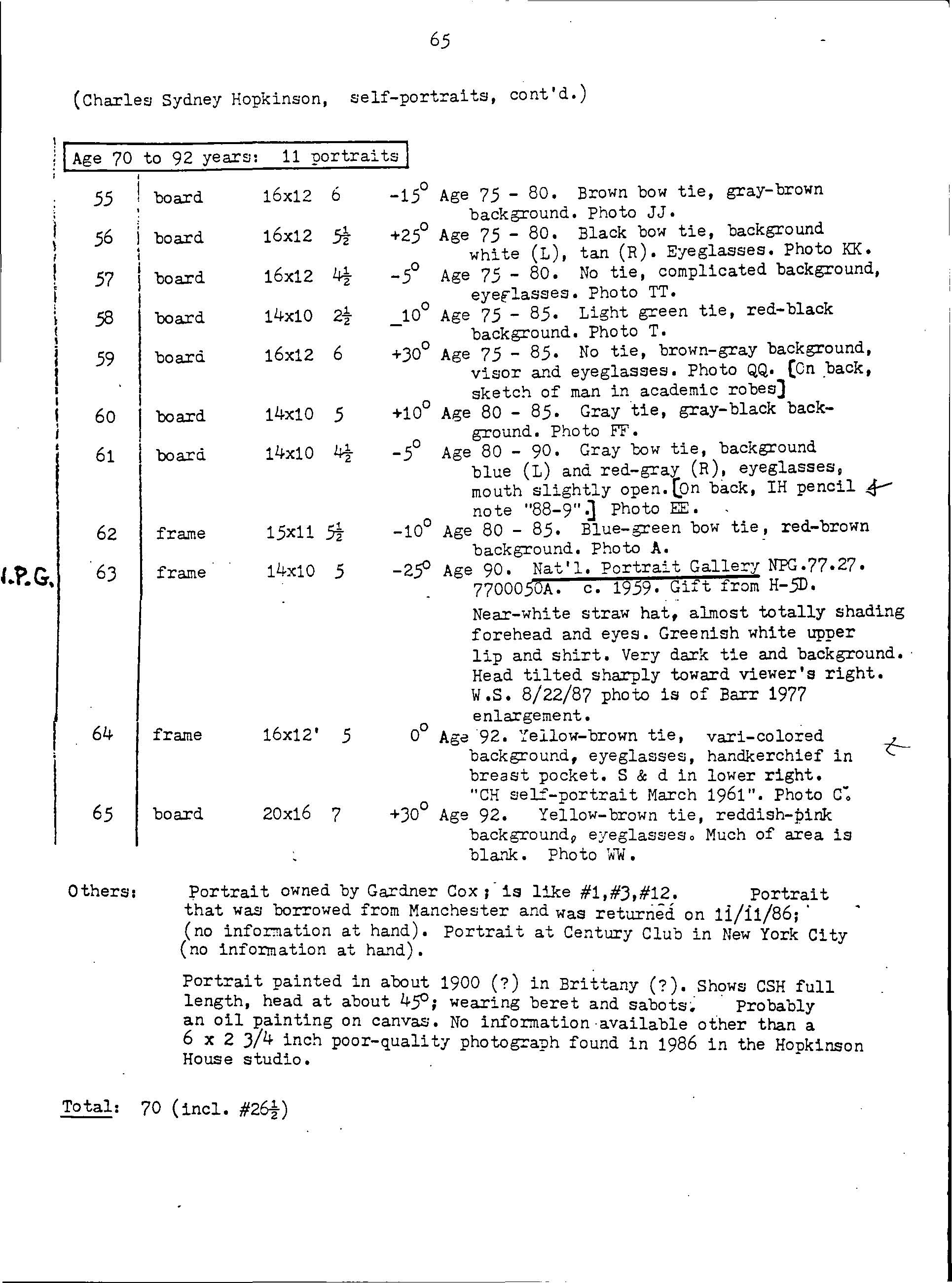 About 70 CSH portraits or sketches are self-portraits. In describing these. we have employed a special format that makes the information more compact and also permits distinguishing the many paintings that are nearly identical.