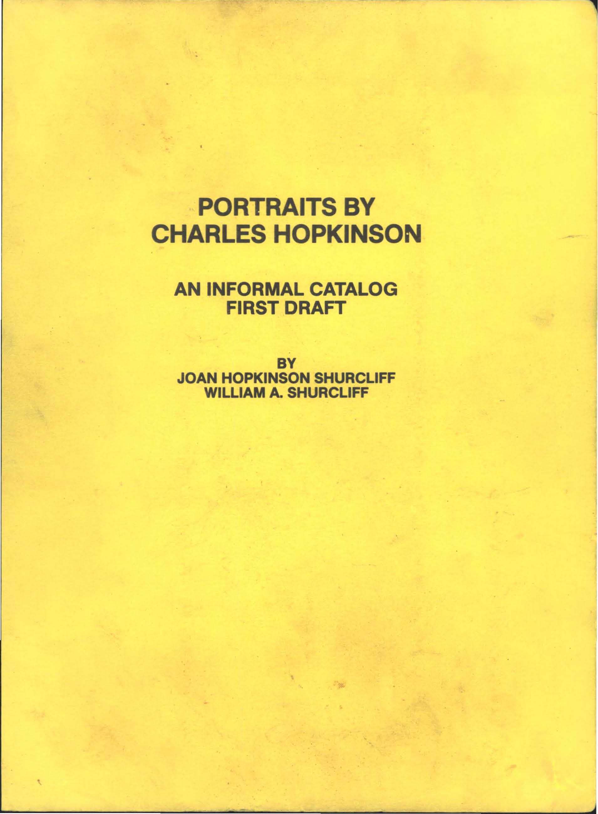 Because Hopkinson gave little attention to record-keeping we have had difficulty in compiling the present catalog. Help has been received from lists prepared by Harvard University curators, from friends and relatives, from income data recorded by Mrs. Hopkinson, from informal stores of labeled and unlabeled photographs of portraits, and from faded newspaper clippings.